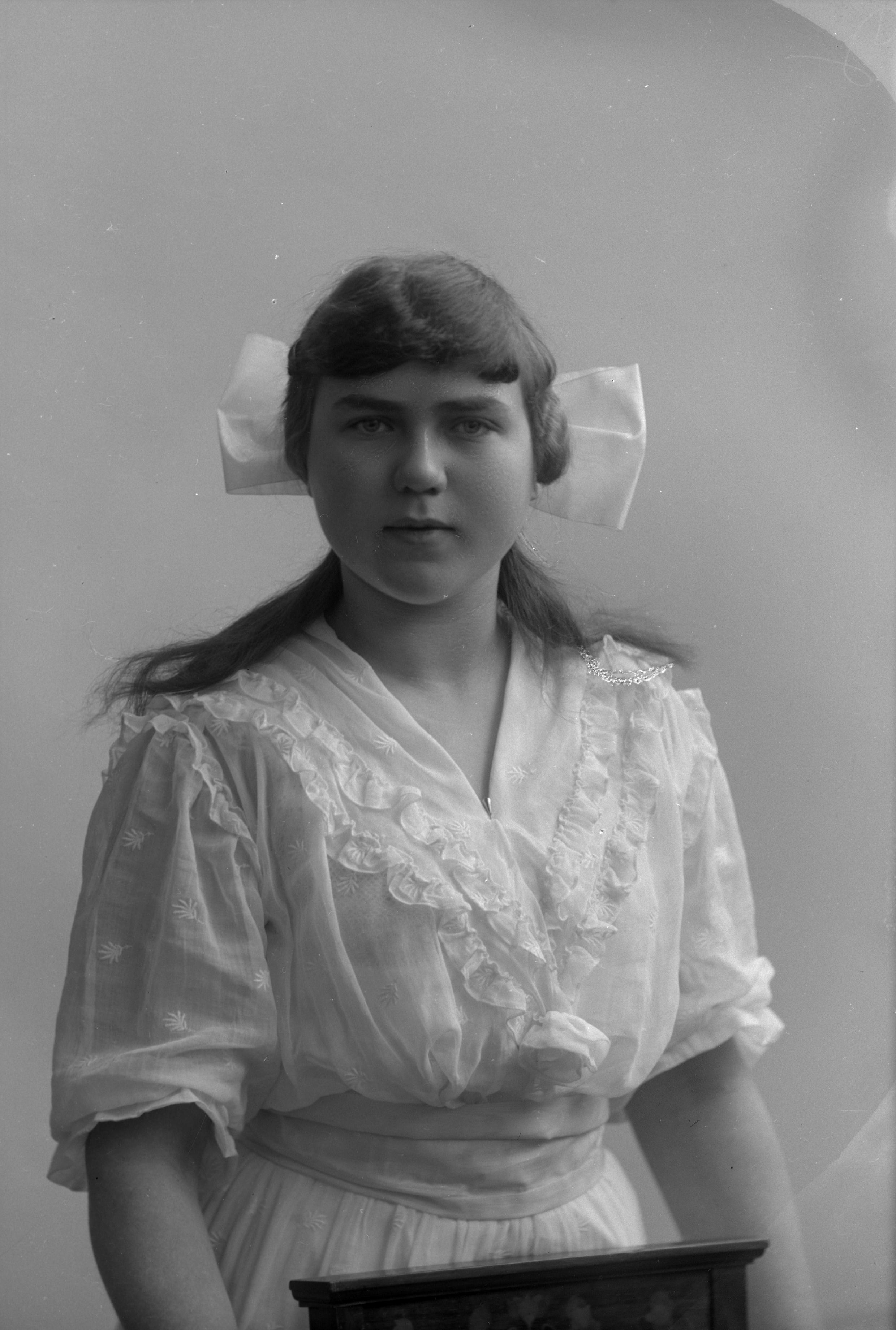 Porträtt i halvfigur av konfirmanden Karin Green.