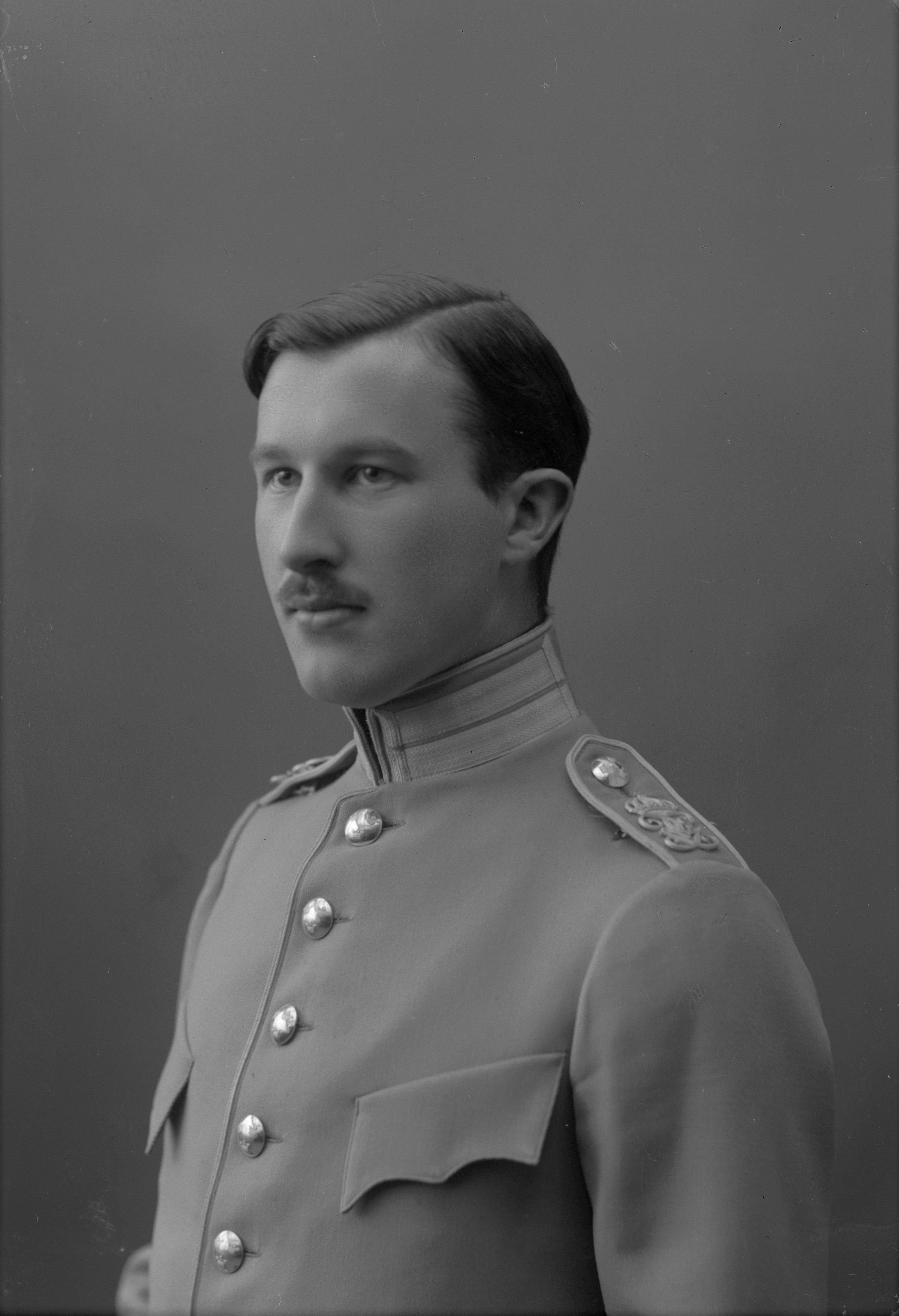 Porträtt i halvfigur av ingenjör Kropp, iklädd militäruniform.