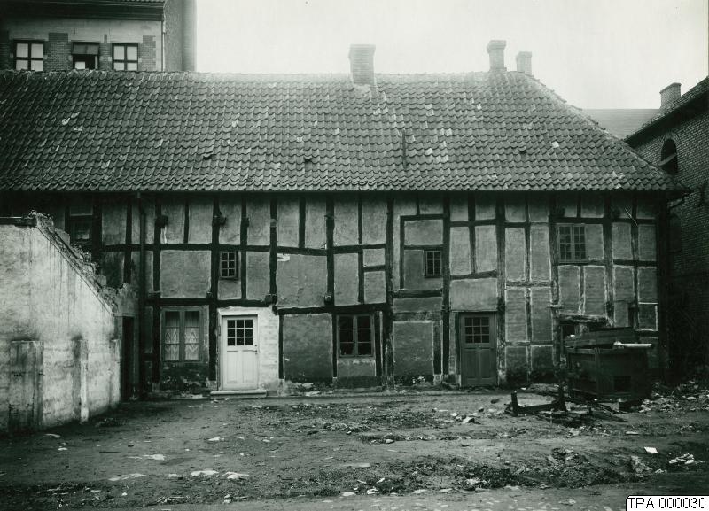 Gårdsinteriör från Diedenska fastigheten med adress Östergatan 6 i kvarteret Carolus. Längan man ser i bild ligger längs Humlegatan och huset som sticker upp är Sjöbergska palatset.