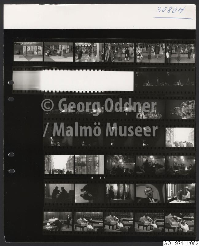 GO 197111:062 :: räknemaskin, man, kvinna, stadsbebyggelse
