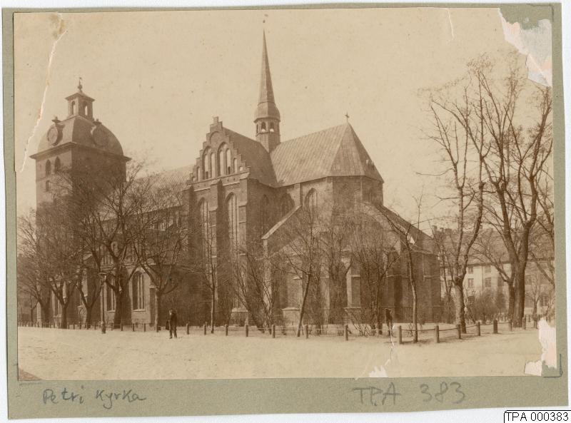S:t. Petri kyrka - exteriör från sydost, gamla tornet.