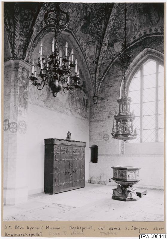 S:t Petri kyrka. Interiör av Dop/Krämarkapellet.
