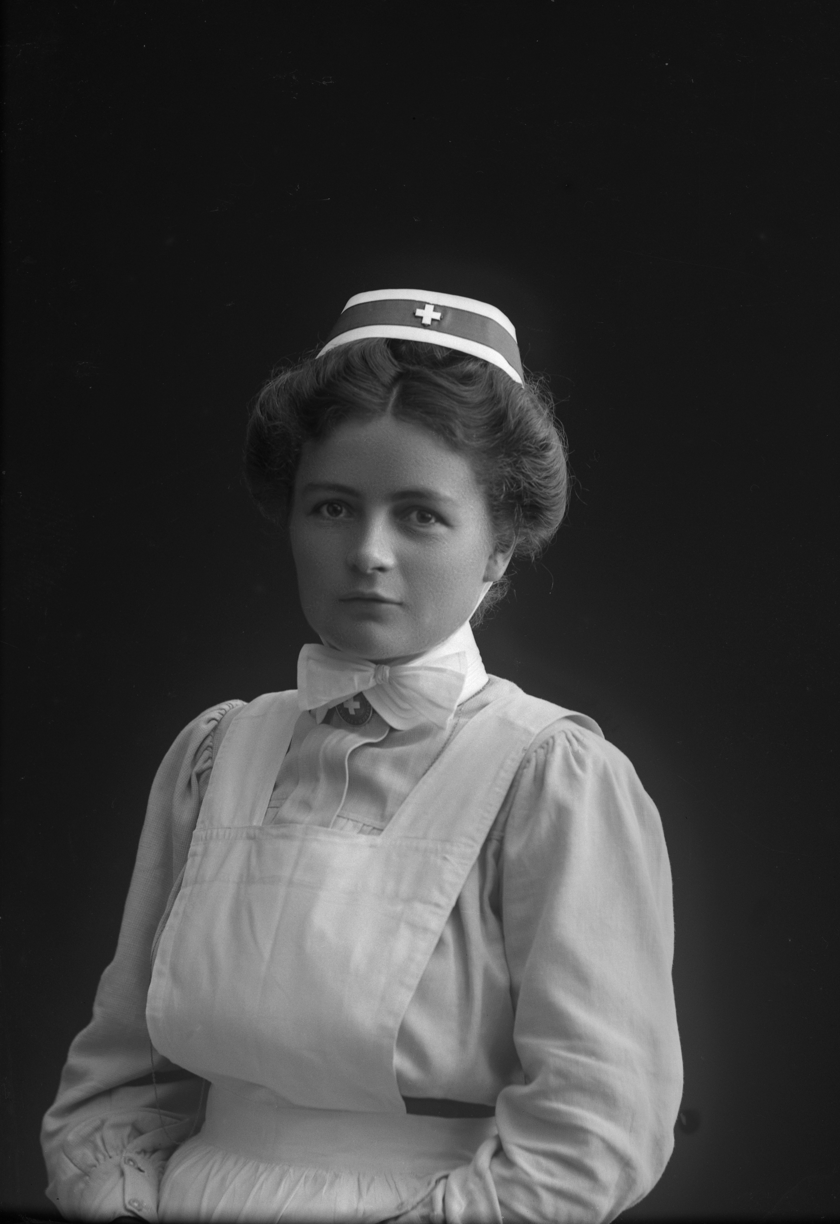 Porträtt i halvfigur av Klara Andersson, iklädd sjuksköterskeuniform.