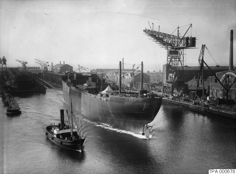 Kockums varv och mekaniska verkstad. Stapelavlöpning. Båten "Nansenville" sjösätts i oktober 1930. Gåva av dir. G Ahlrots sterbhus.