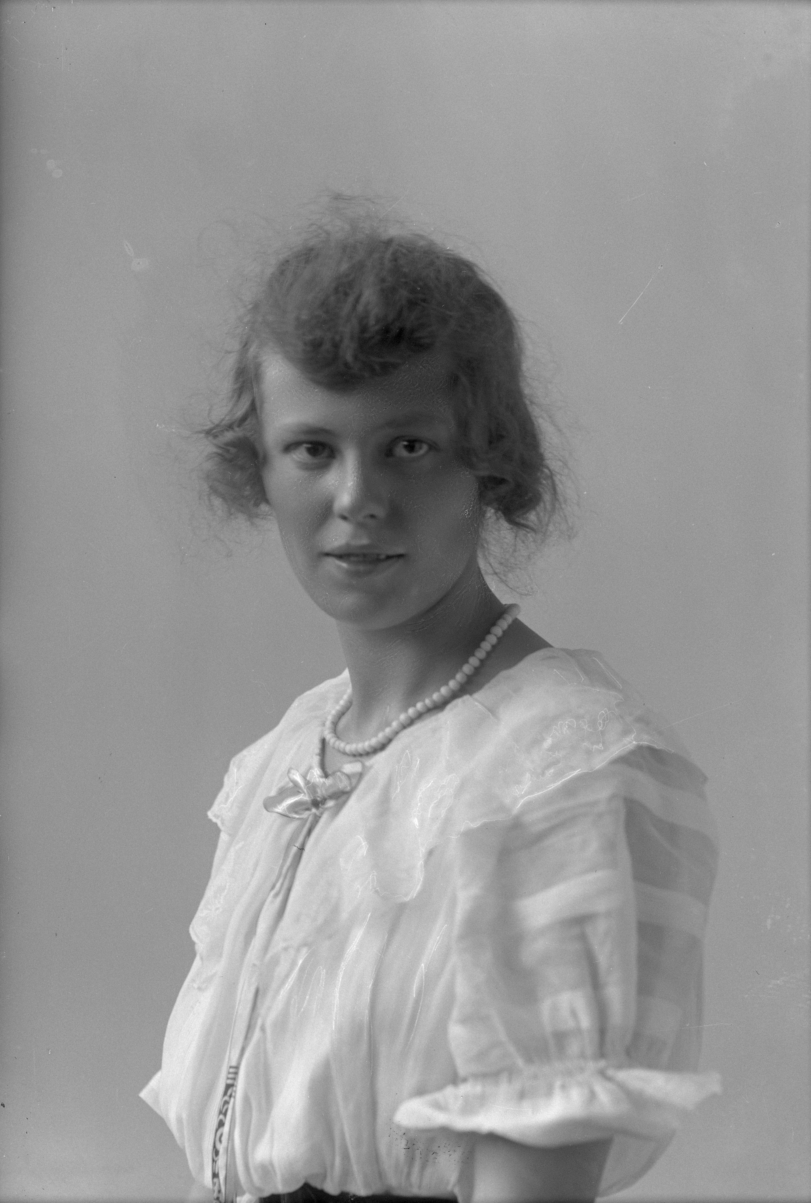 Porträtt i halvfigur av Fanny Wizén, gymnastikdirektör.