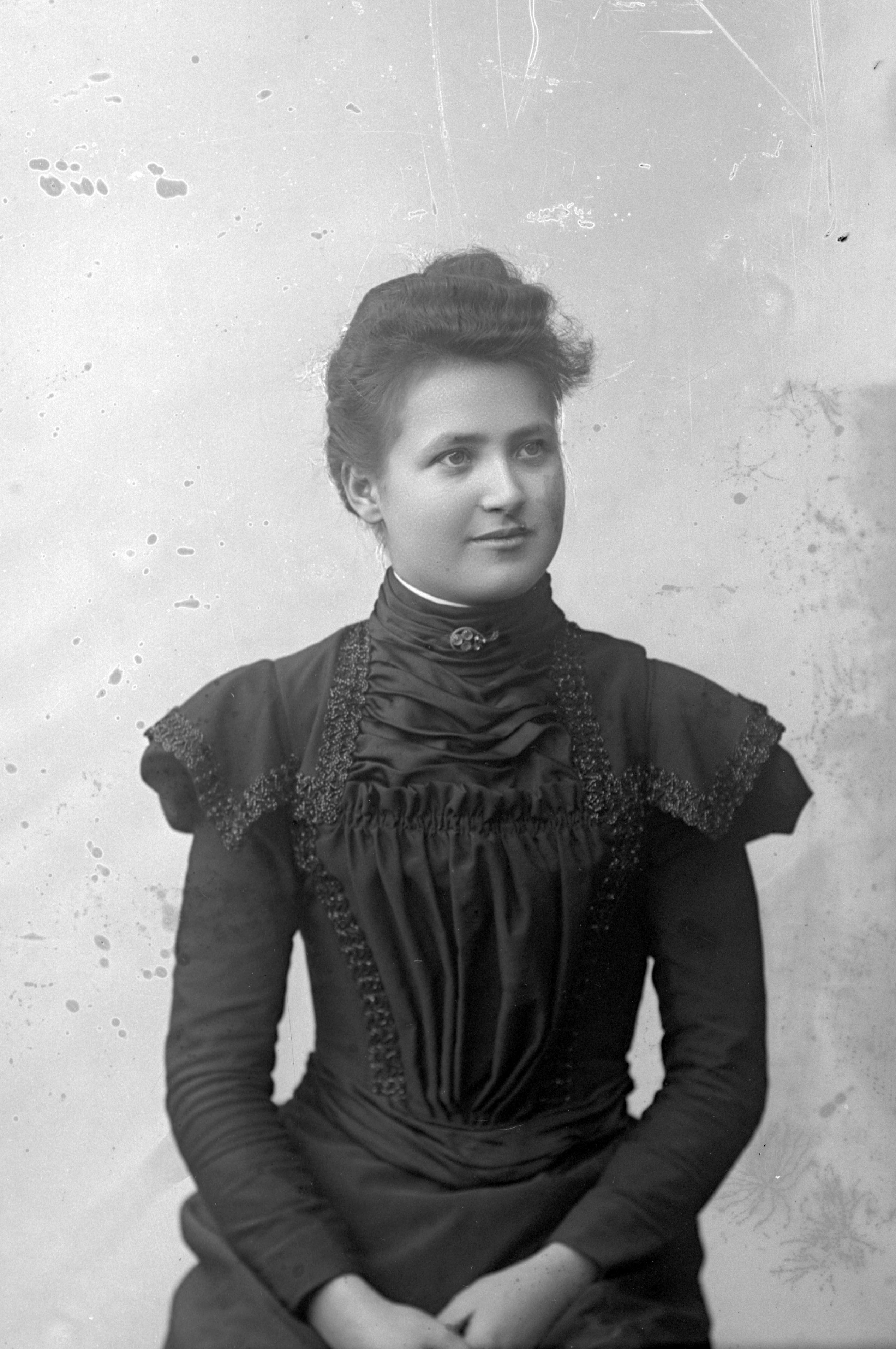 Porträtt i halvfigur av Olga Esbjörnsson, dotter till handelsmannen Troed Esbjörnsson (1831-1902).