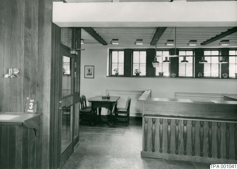 Interiör från Ekströmska huset i kvarteret Stjärnan. Banksal. Bild tagen 1964-65. Stämpel: B. W. Foto.