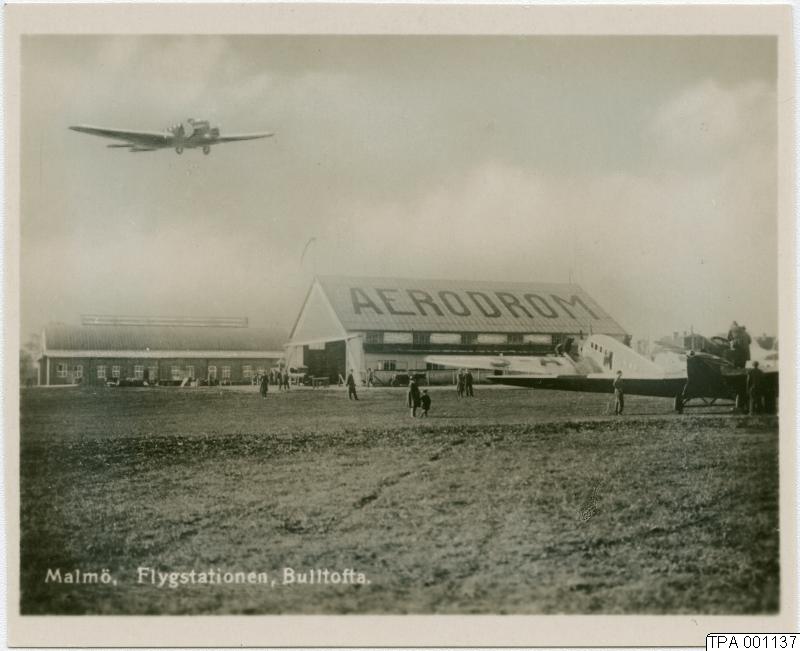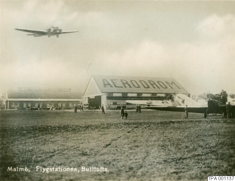 Flystationen Bulltofta i Malmö med flygplan och byggnader.