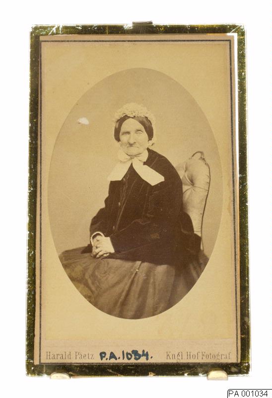 Porträtt av ej idenitifierad person i familjen Saxtorph (eventuellt mormor till Alma Apoloff). Fotografi i ställ.