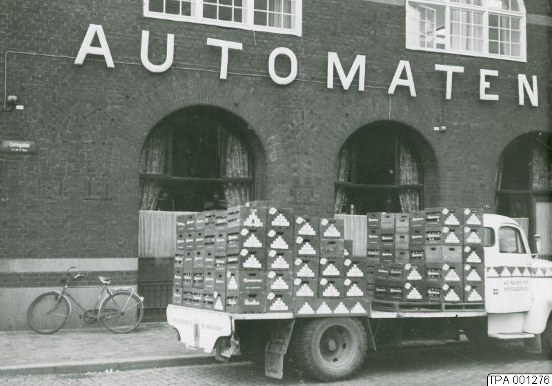 Sista ölleveransen till automatrestaurangen Vega innan den stängde och inredningen flyttades till Malmö museum på hösten 1961.