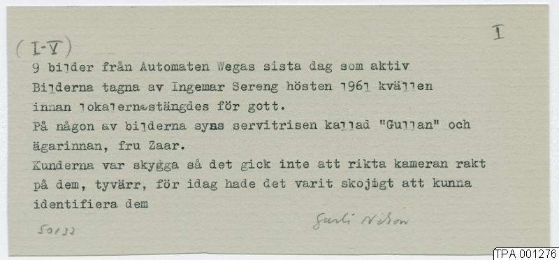 TPA 001276 :: automatrestaurang, ölleverans, wega