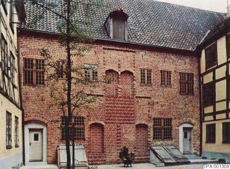 Gårdsinteriör från Rosenvingeska huset vid Västergatan i kvarteret Jörgen Kock. Reprofoto.