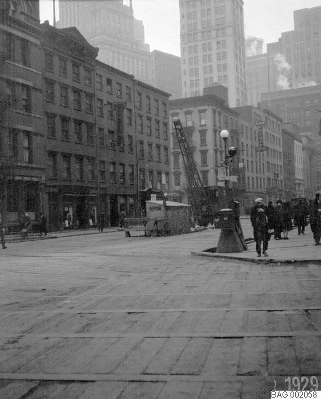 USA 1929: New York - gatubild utanför Fraunces Tavern