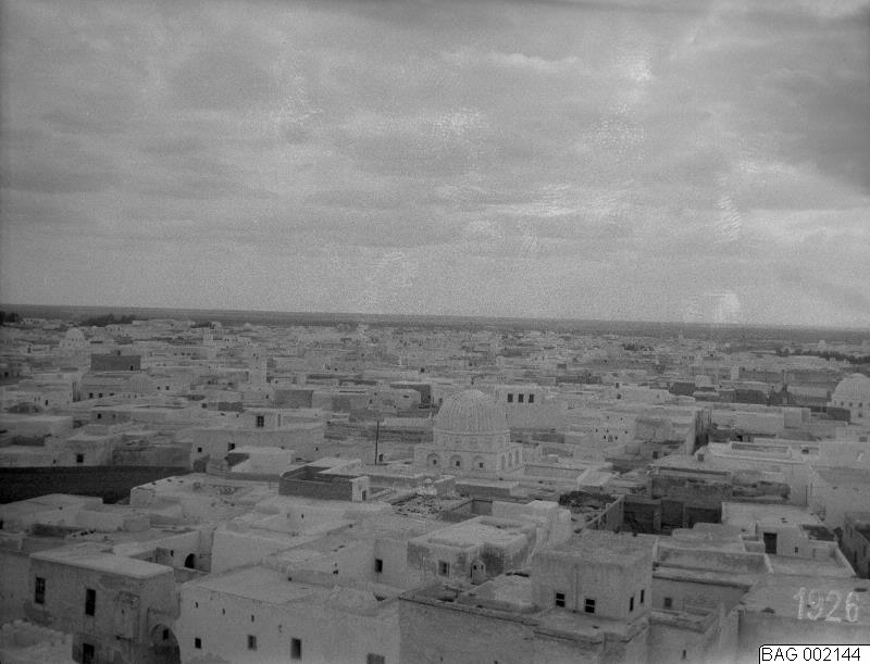 Tunisien-Kairouan 1926: Utsikt över stan från stora moskéns minaret
