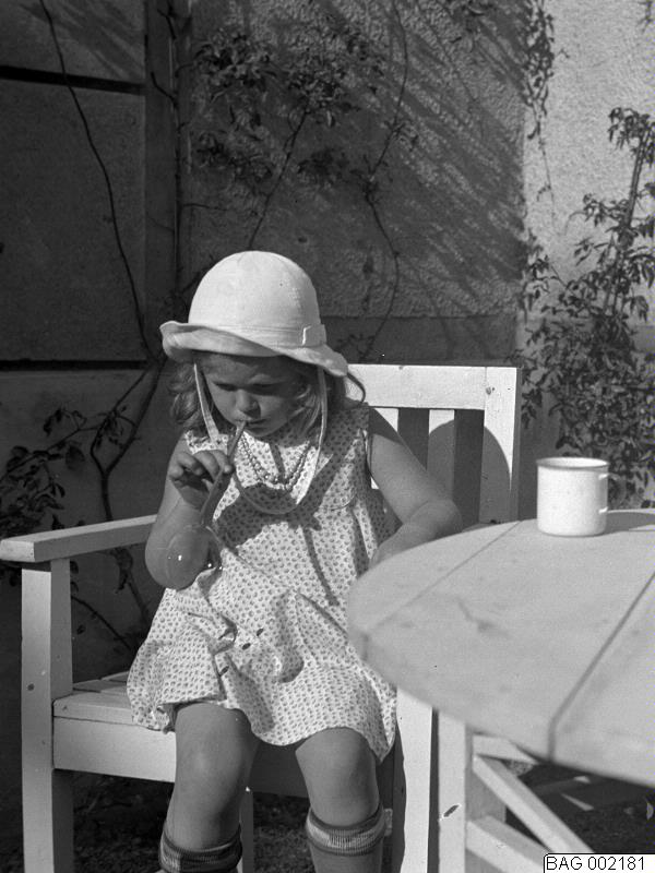 Holger Burman, Hantverkargatan 61: Liten flicka vid bordet - ext - Elisabeth (Bagers barnbarn). 1932.