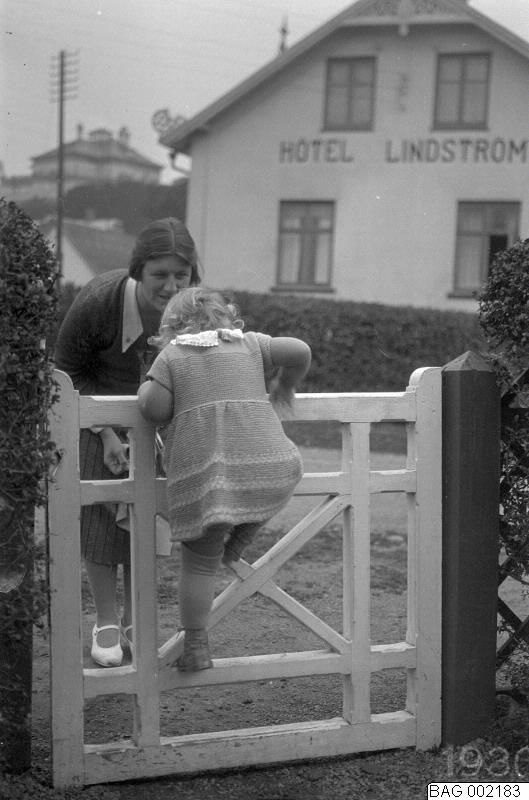 Holger Burman, Hantverkargatan 61: Liten flicka vid grinden, kvinna - Mölle, Hotel Lindström. 1930.