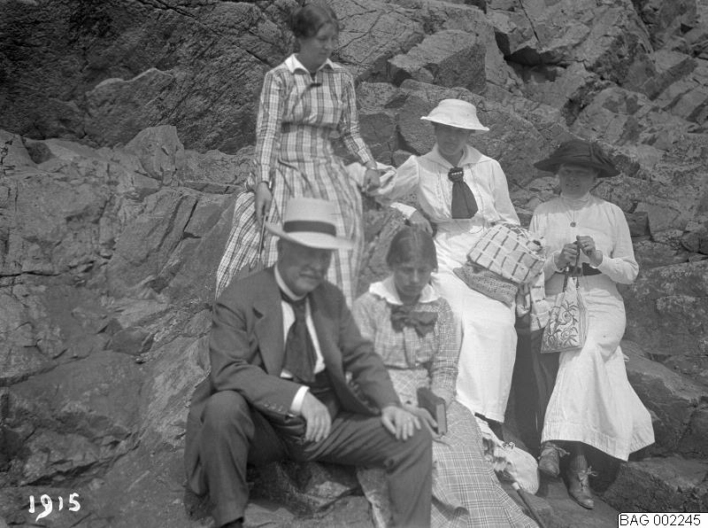 Vid klippor: Erik Bökman, Henny, Ellen, Sigrid Bökman. 1915.