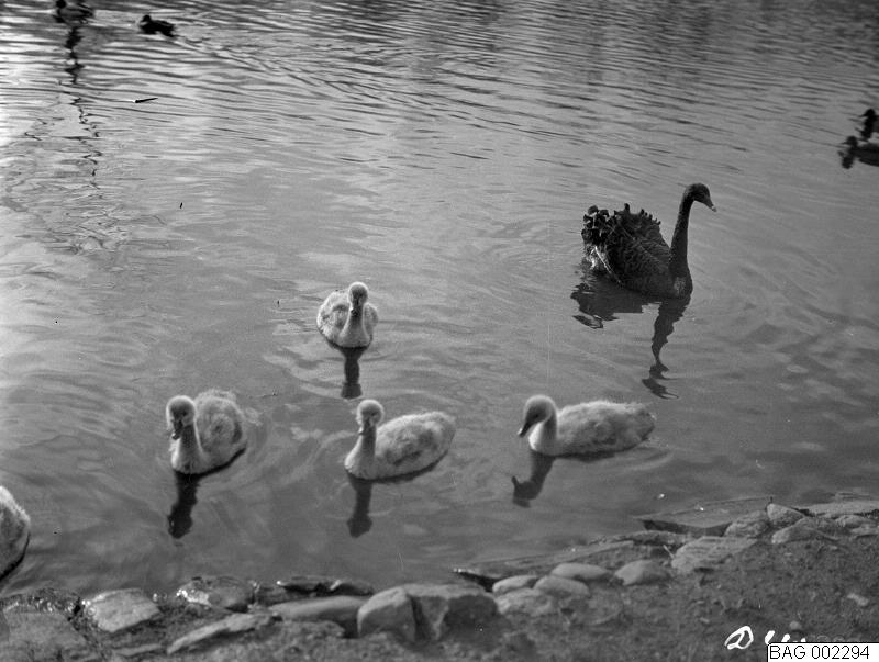 Australiensiska svanar i Slottsparken. December 1930.
