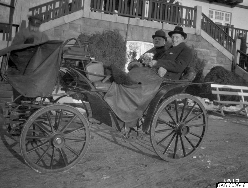 Ulricehamn: Vid sanatoriet - två män i hästdroska (löjtnant Ekström + 1). 1917.