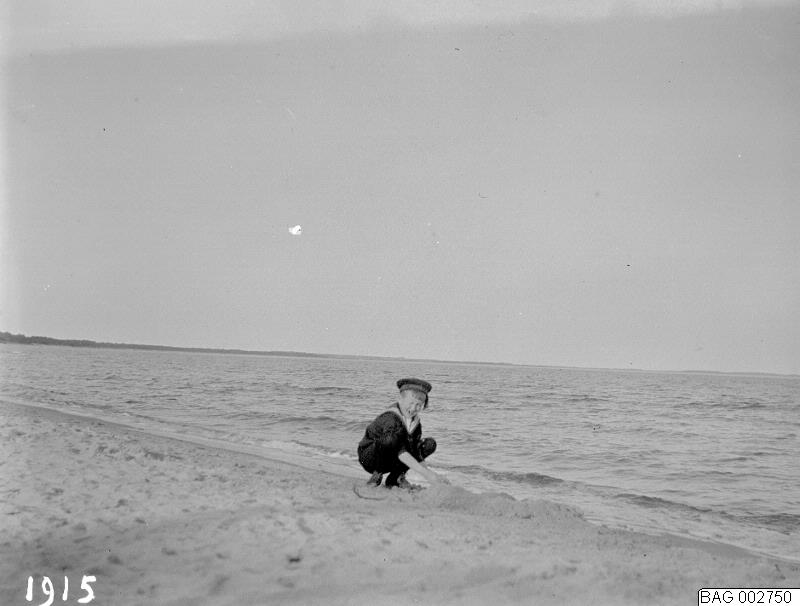 Ystad: Pojke leker på stranden. 1915.