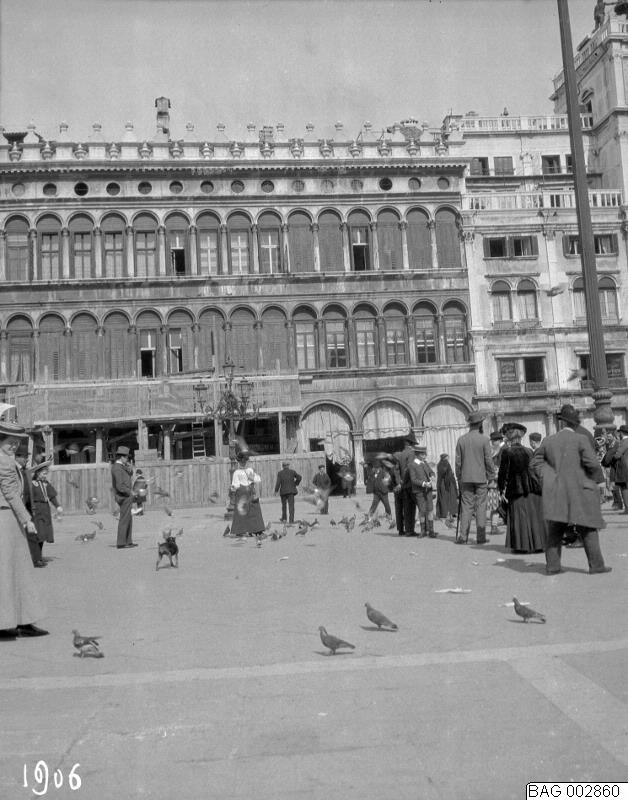 Venedig 1906: Piazza San Marco - människor och duvor