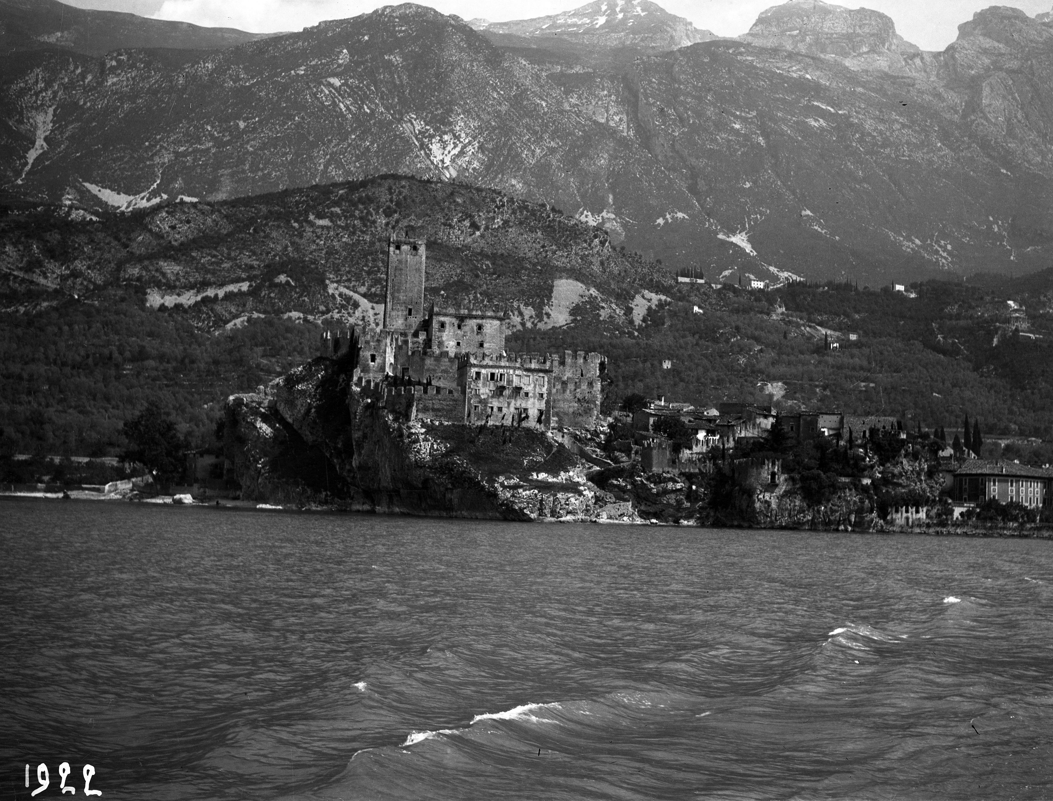 Gardasjön med omnejd: Malcesine - vy från sjön. 1922.