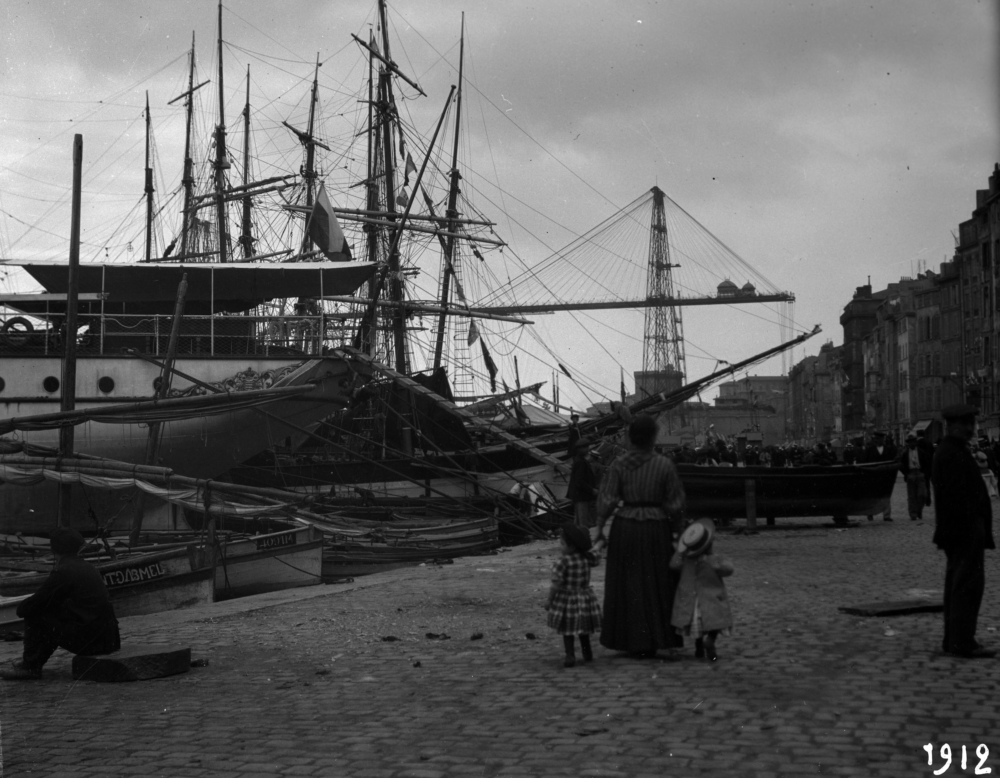 Marseille: Hamn - segelbåtar, fiskare. 1912.