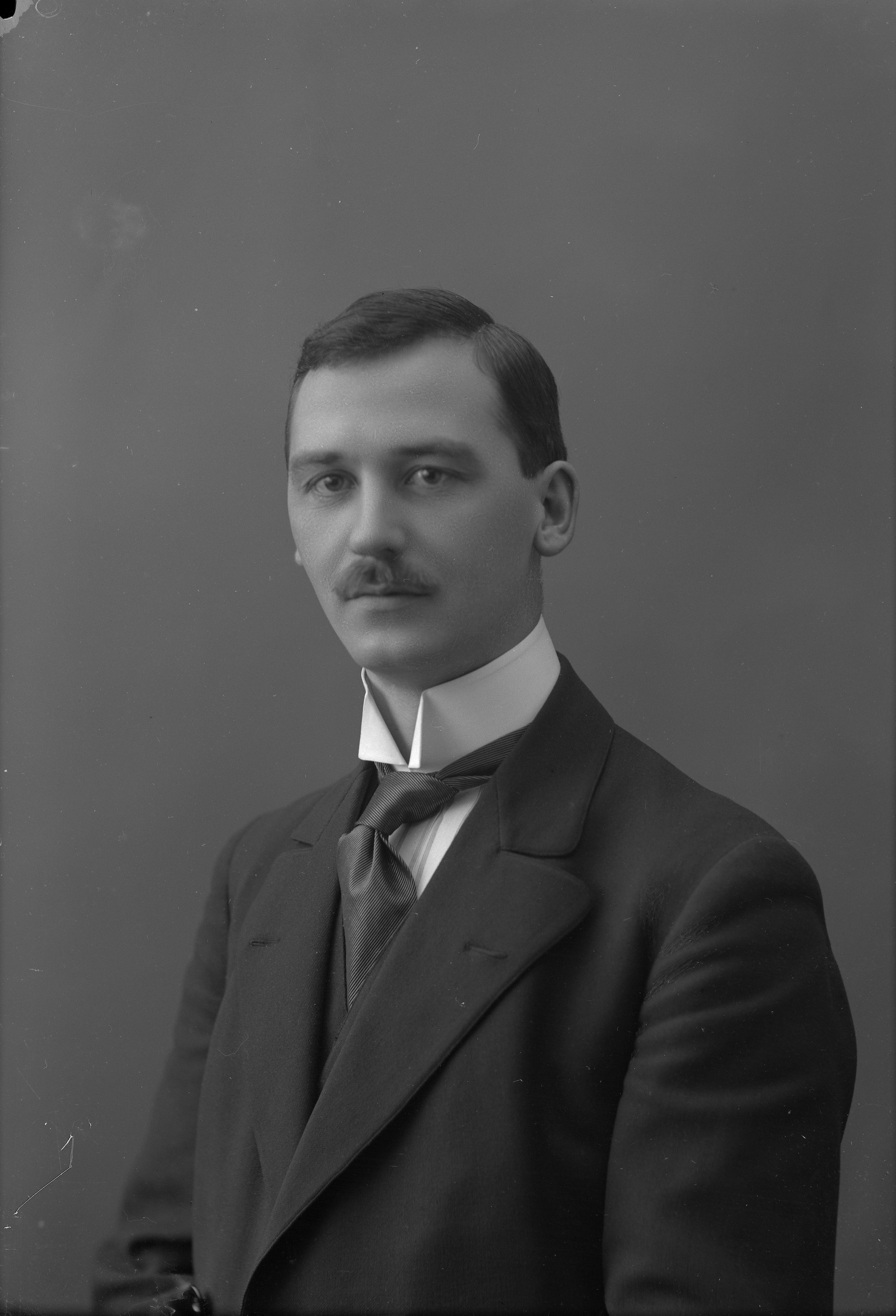 Porträtt i halvfigur av J. Lundblad, filosofie magister.