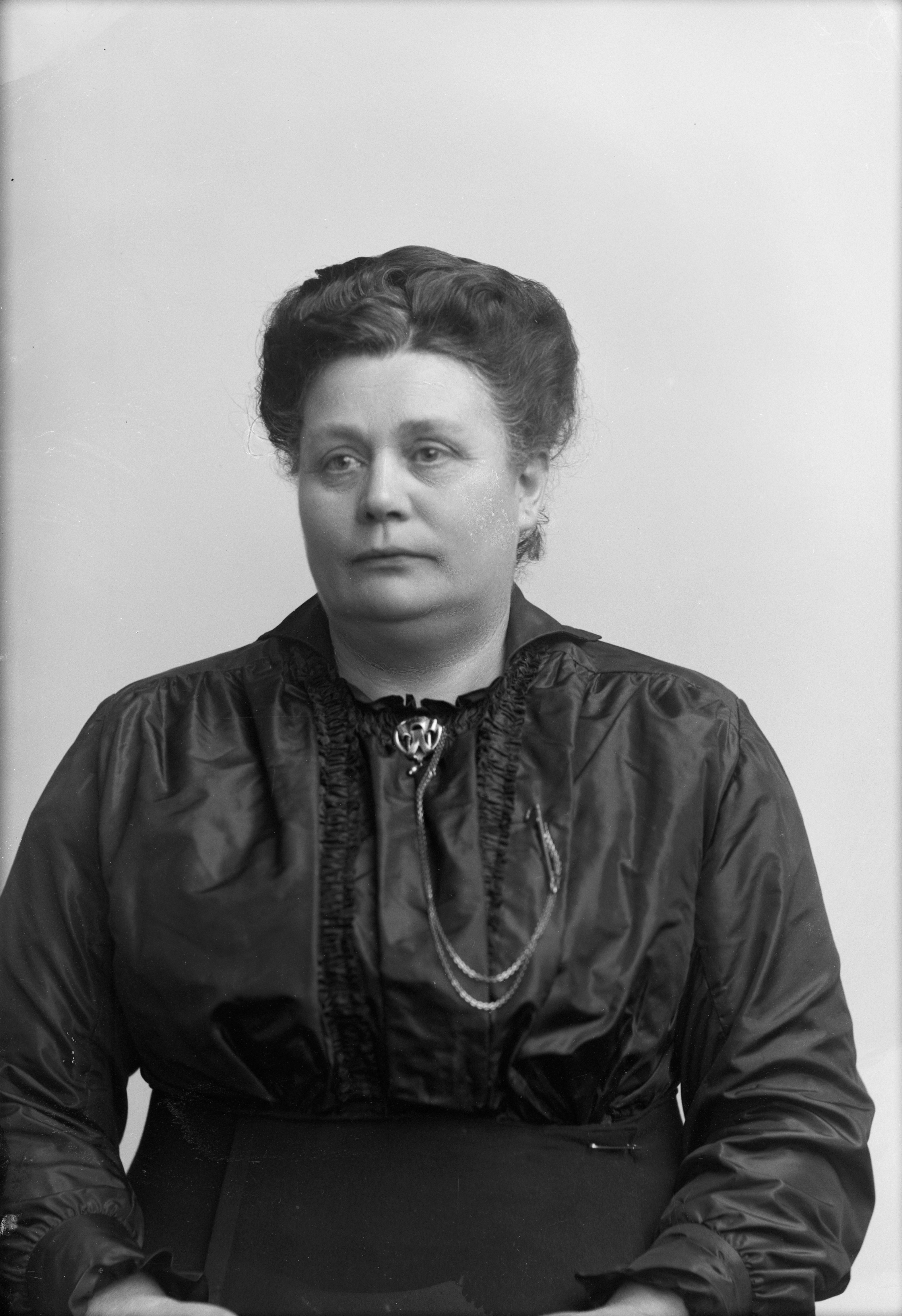 Porträtt i halvfigur av lantbrukerskan Hanna Jönsson.
