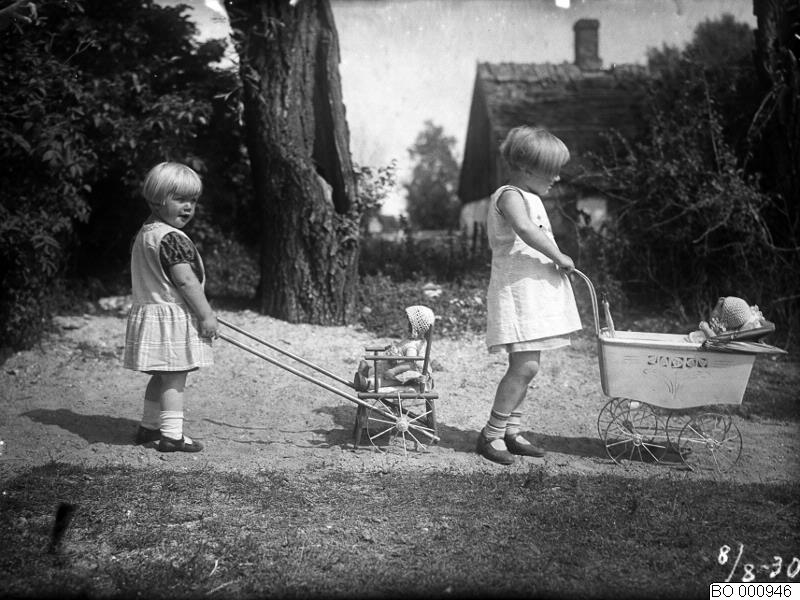 Två flickor med barnvagnar, 8 augusti 1930.