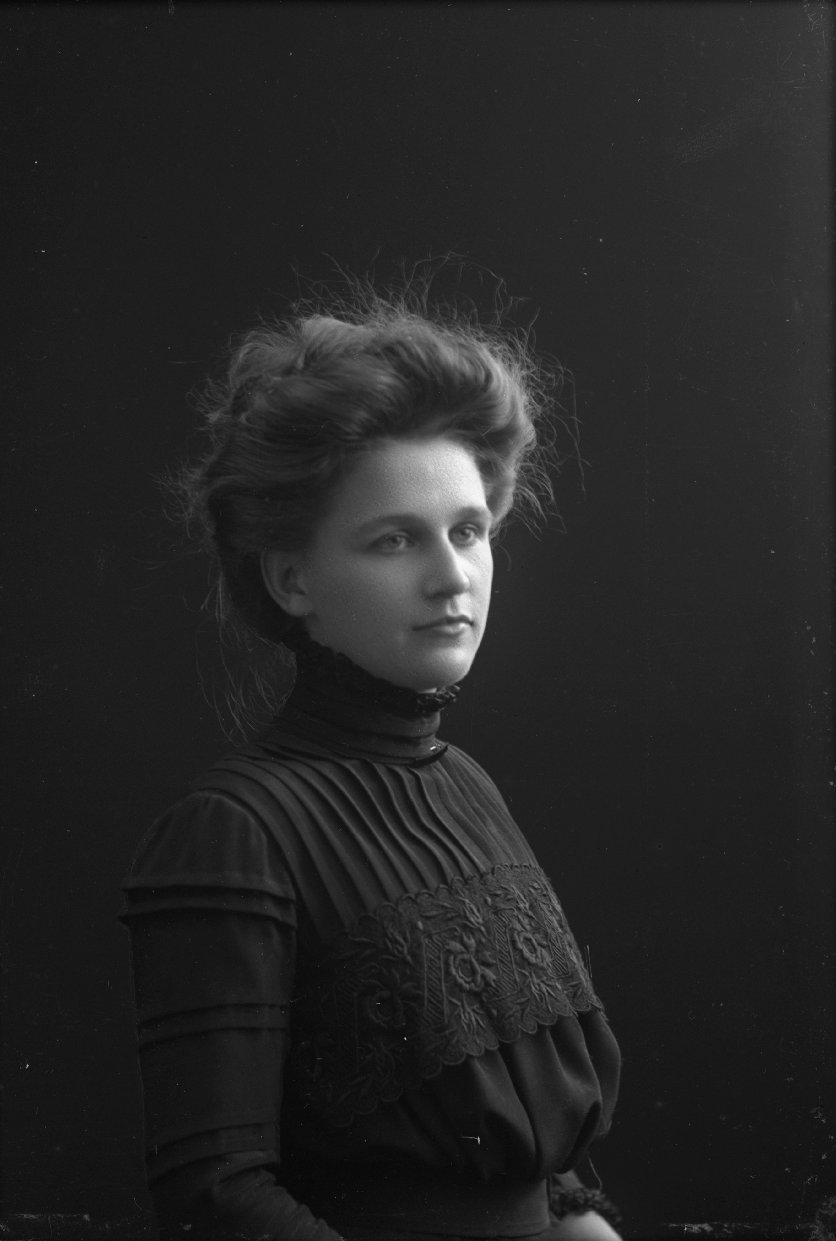 Porträtt i halvfigur av barnflickan Rut Alfonsina Vestberg.