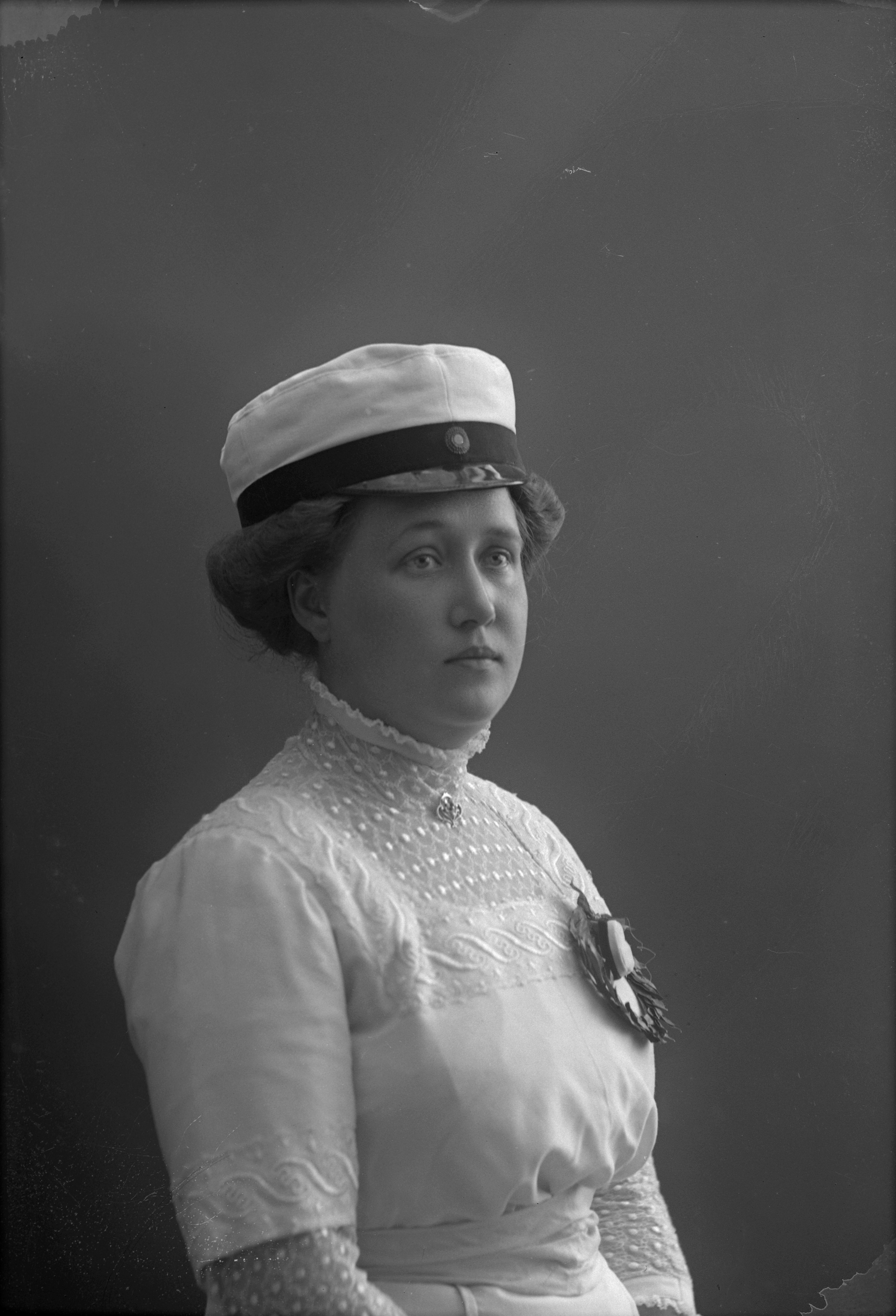 Porträtt i halvfigur av Calla Dahl, iklädd studentmössa.