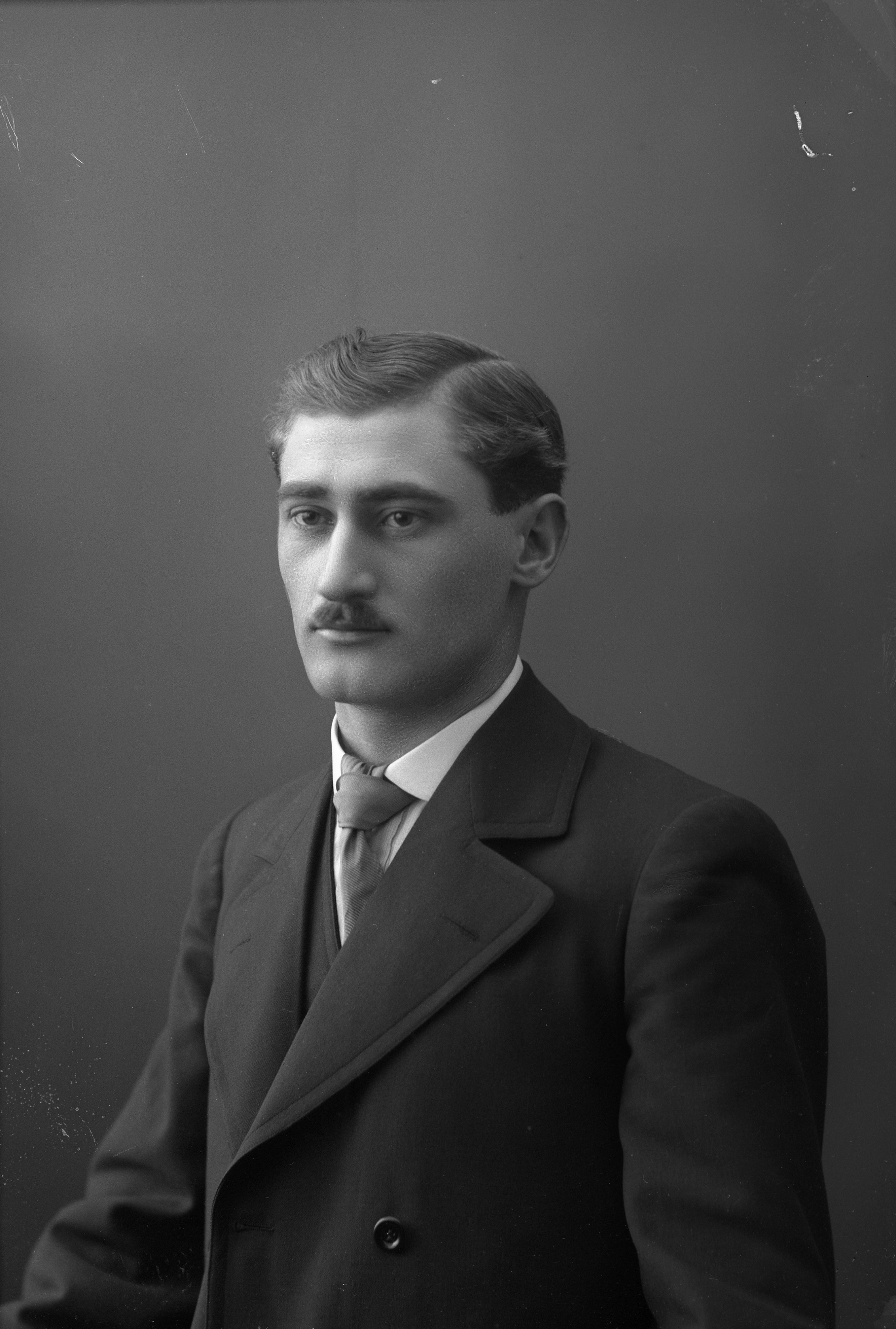 Porträtt i halvfigur av bryggeriarbetare Alfred Andersson.