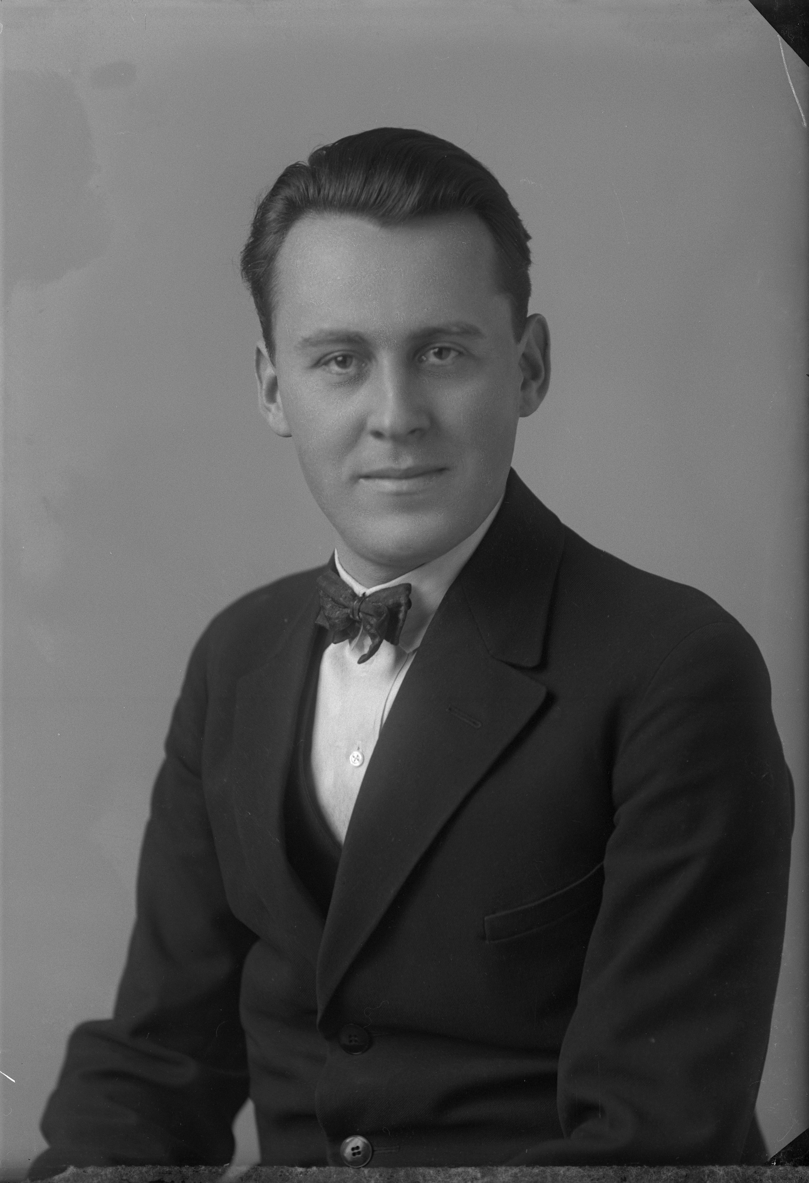 Porträtt i halvfigur av postassitent Långe.