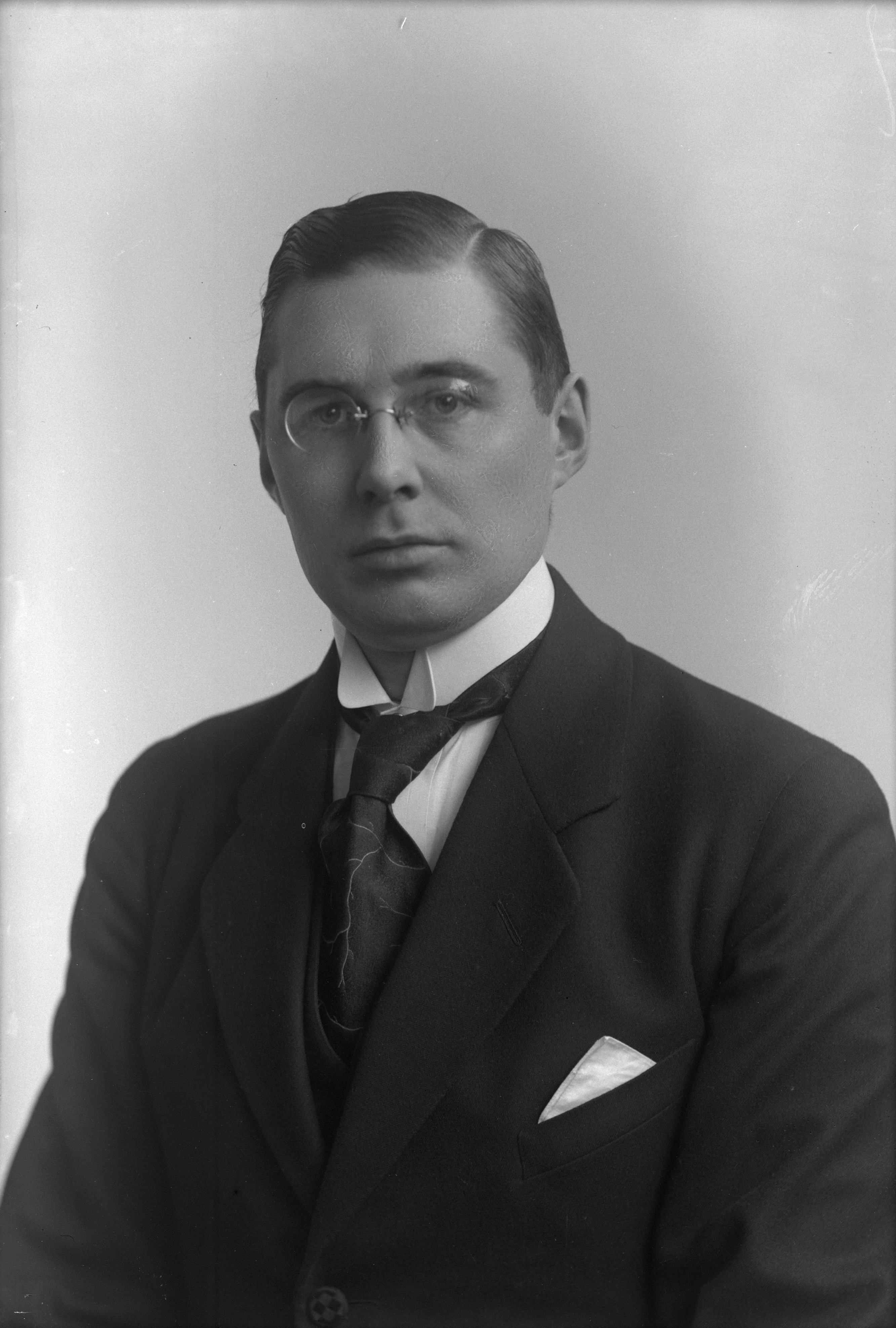 Porträtt i halvfigur av Svante Sylvan, filosofie licentiat.