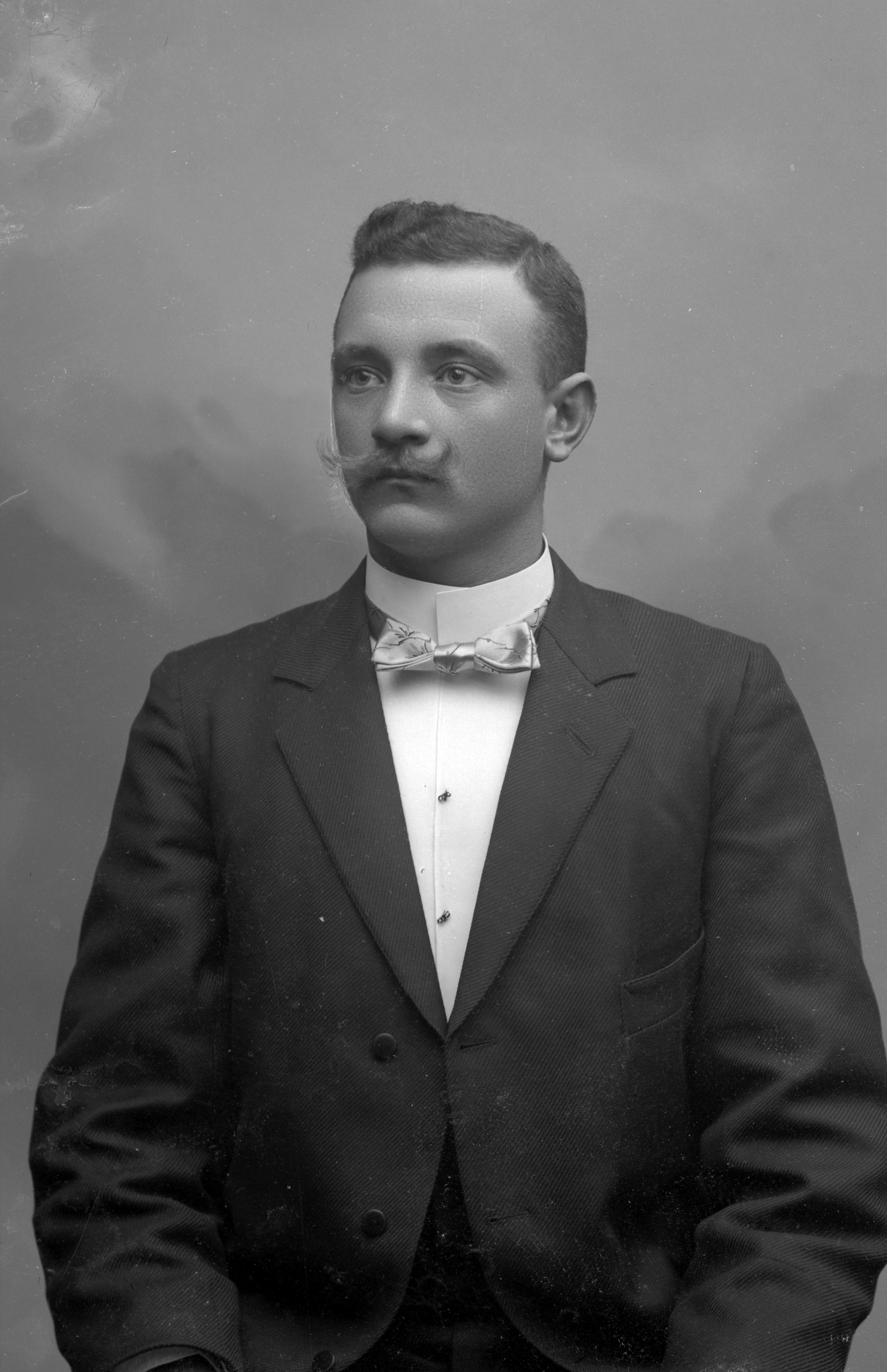 Porträtt i halvfigur av lantbrukare Alfred Andersson Munk.