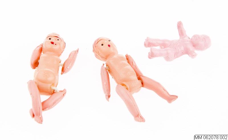 Doppynt i form av tre stycken bebisdockor av plast.