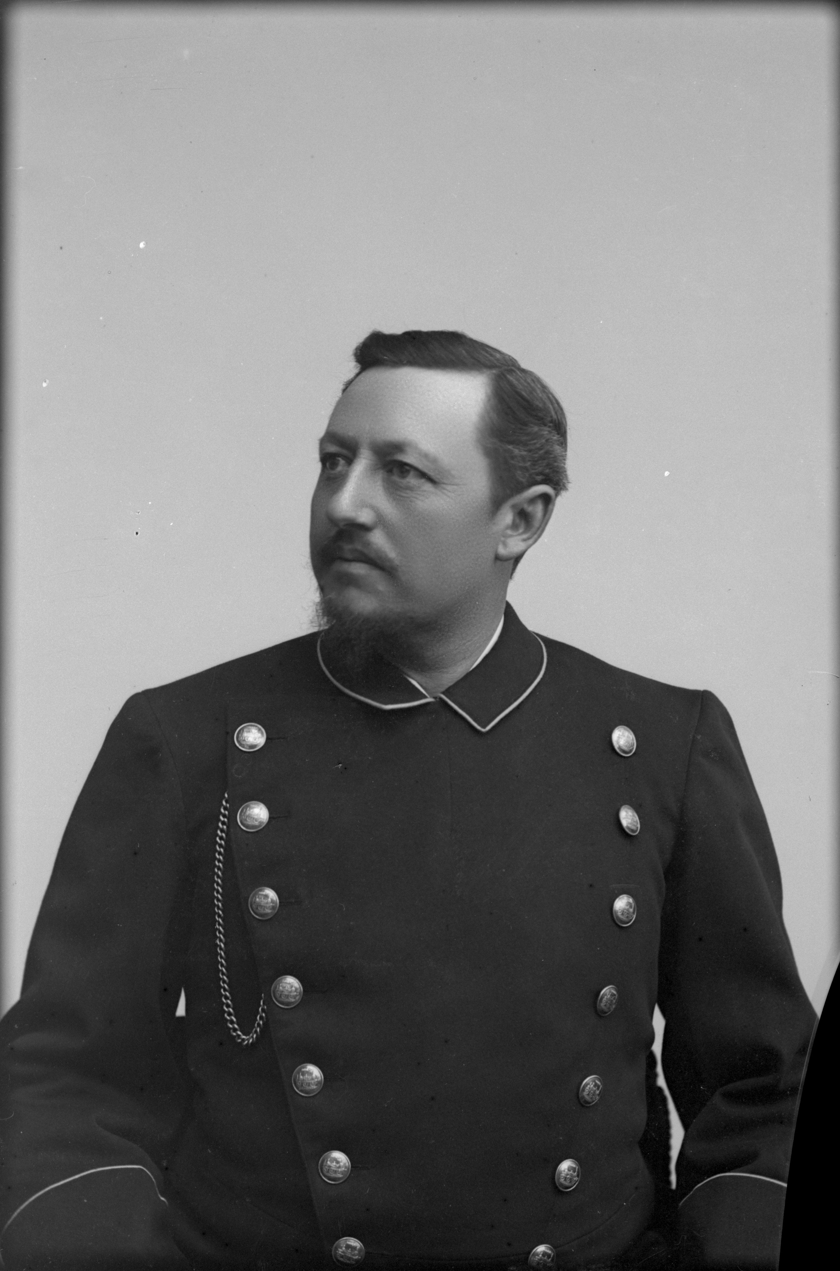Porträtt i halvfigur av konduktör Staffan Andersson Staffansson, iklädd SJ-uniform.