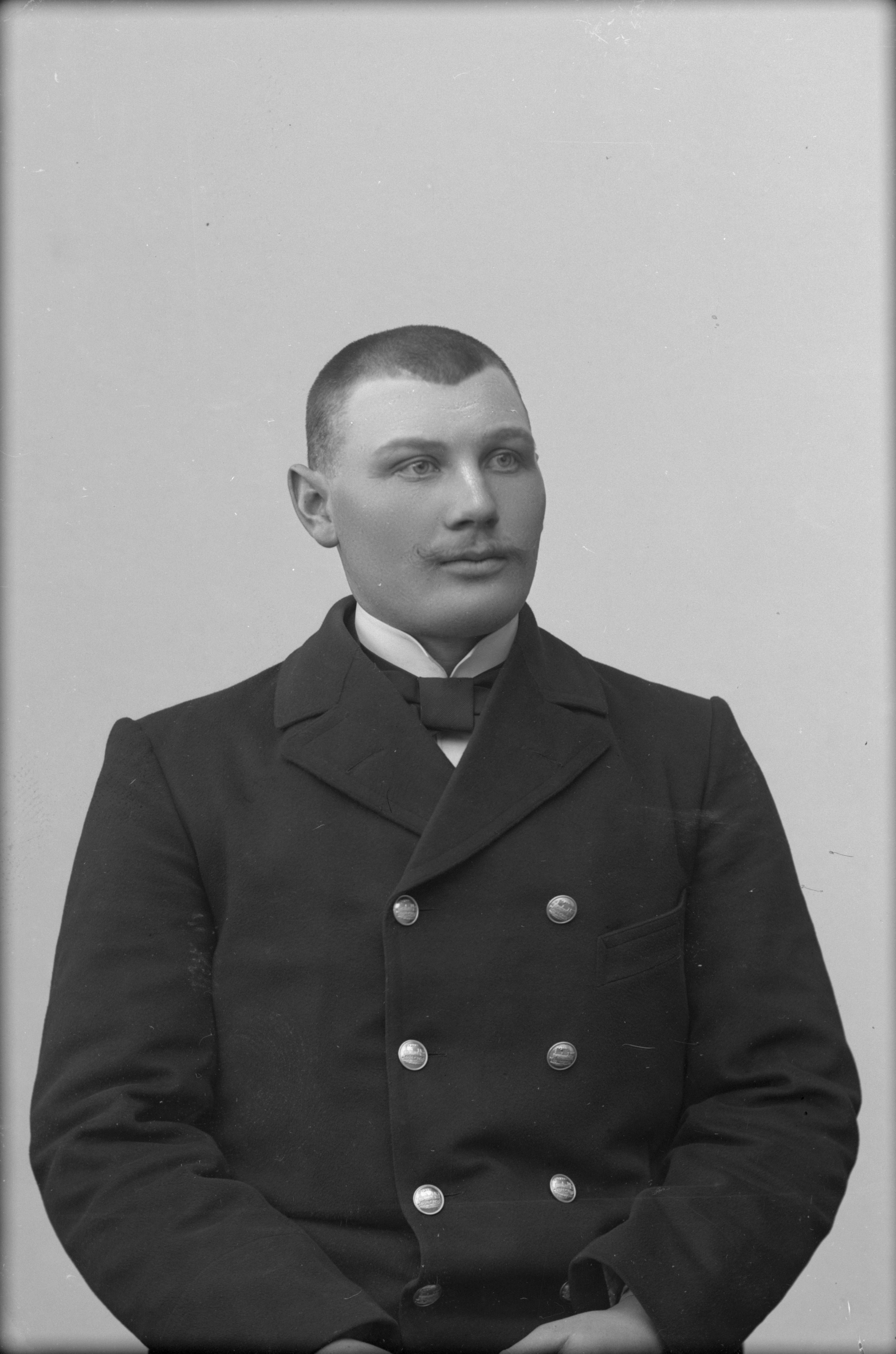 Porträtt i halvfigur av stationskarl Illix, iklädd SJ-uniform.