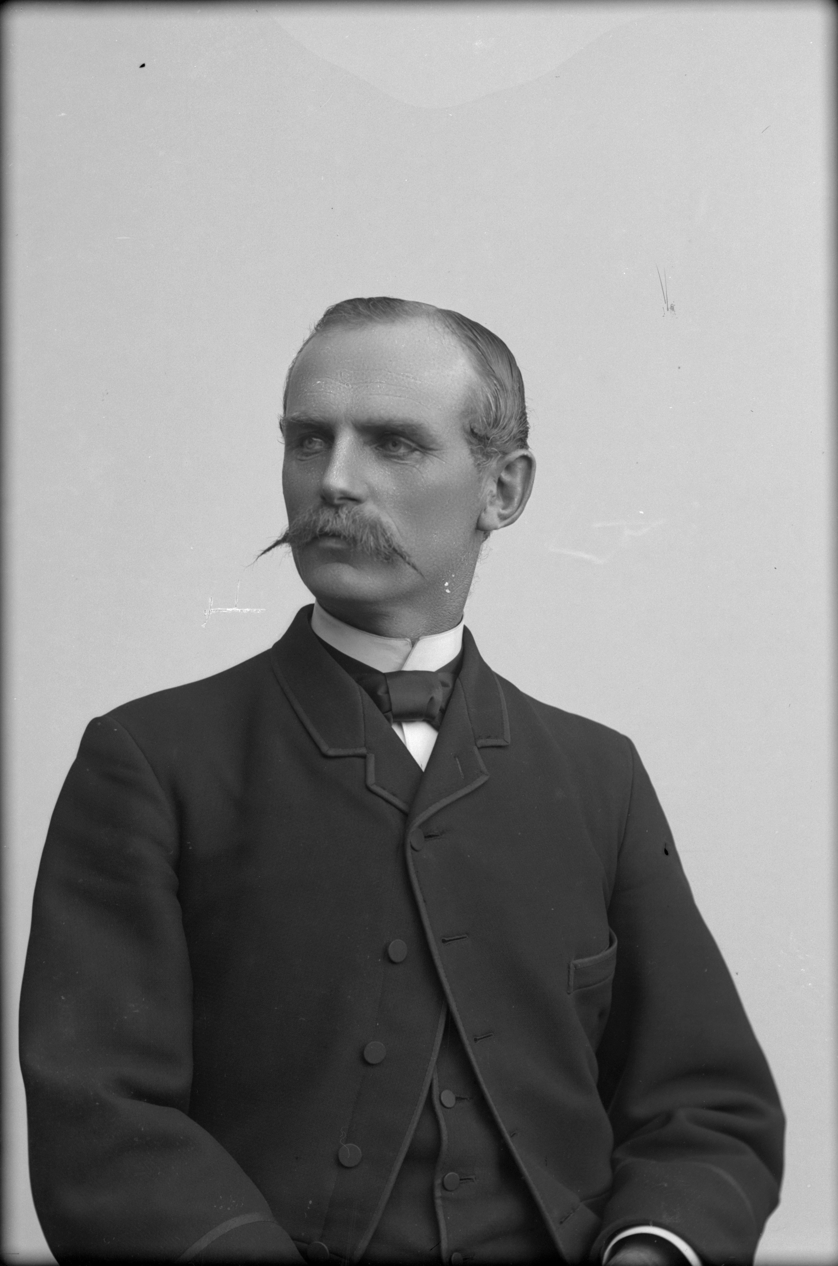 Porträtt i halvfigur av stationskarl Nils Jeppsson.