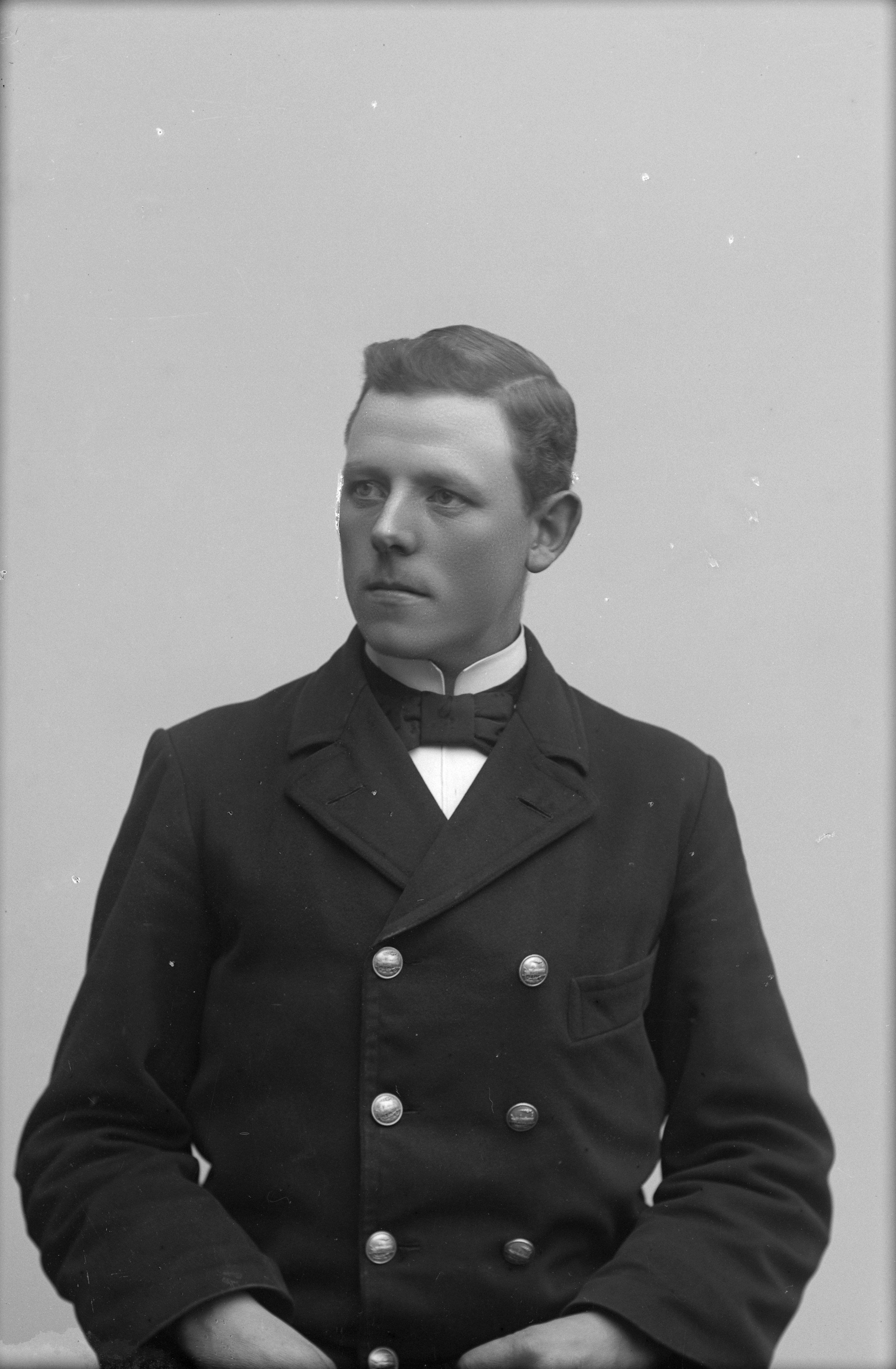 Porträtt i halvfigur av A. E. Östh, iklädd SJ-uniform.