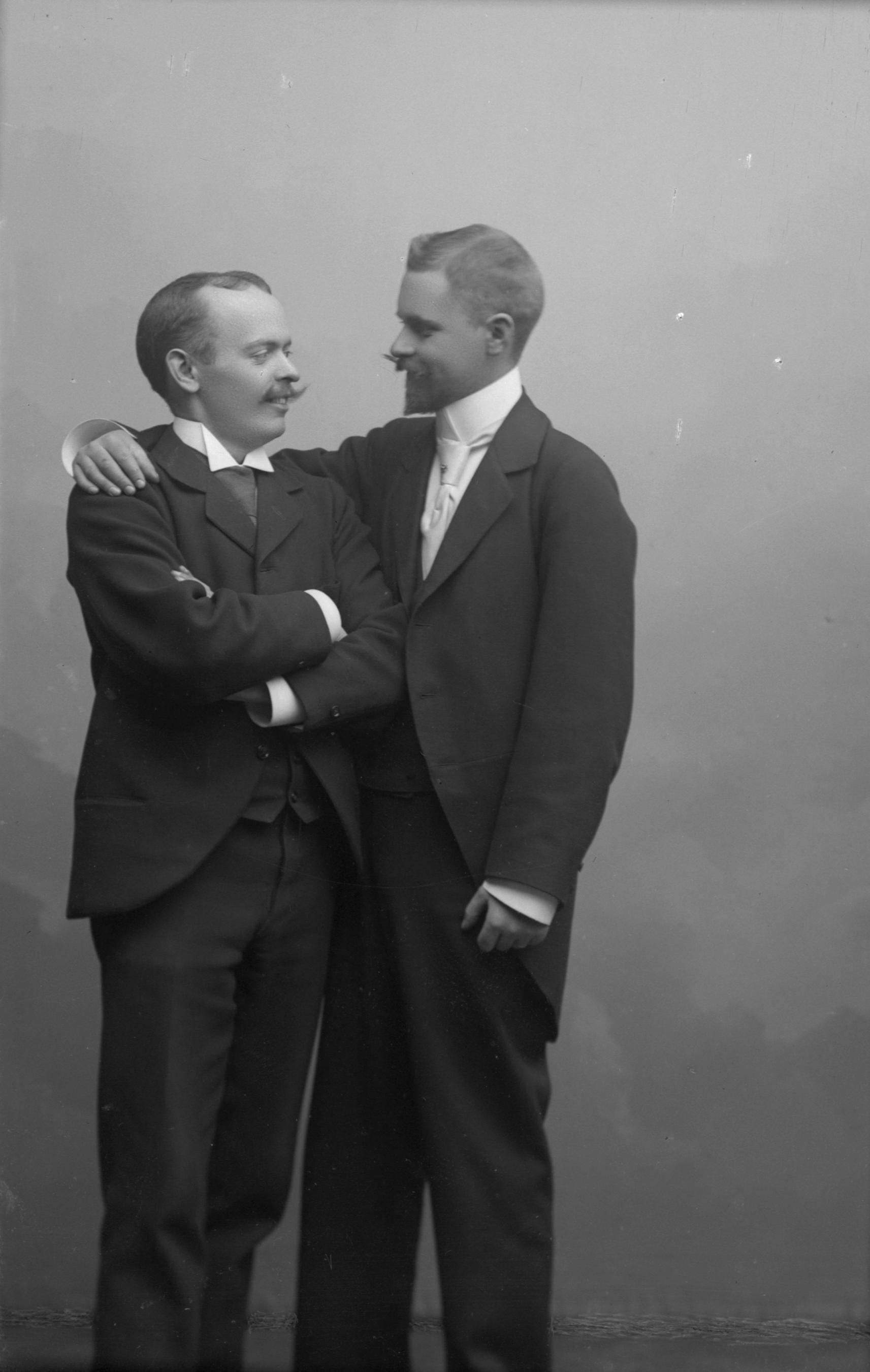 Porträtt i helfigur av konsul och grosshandlare Bertil Sederholm med okänd man, sannolikt kompanjonen Hjalmar Wiens.