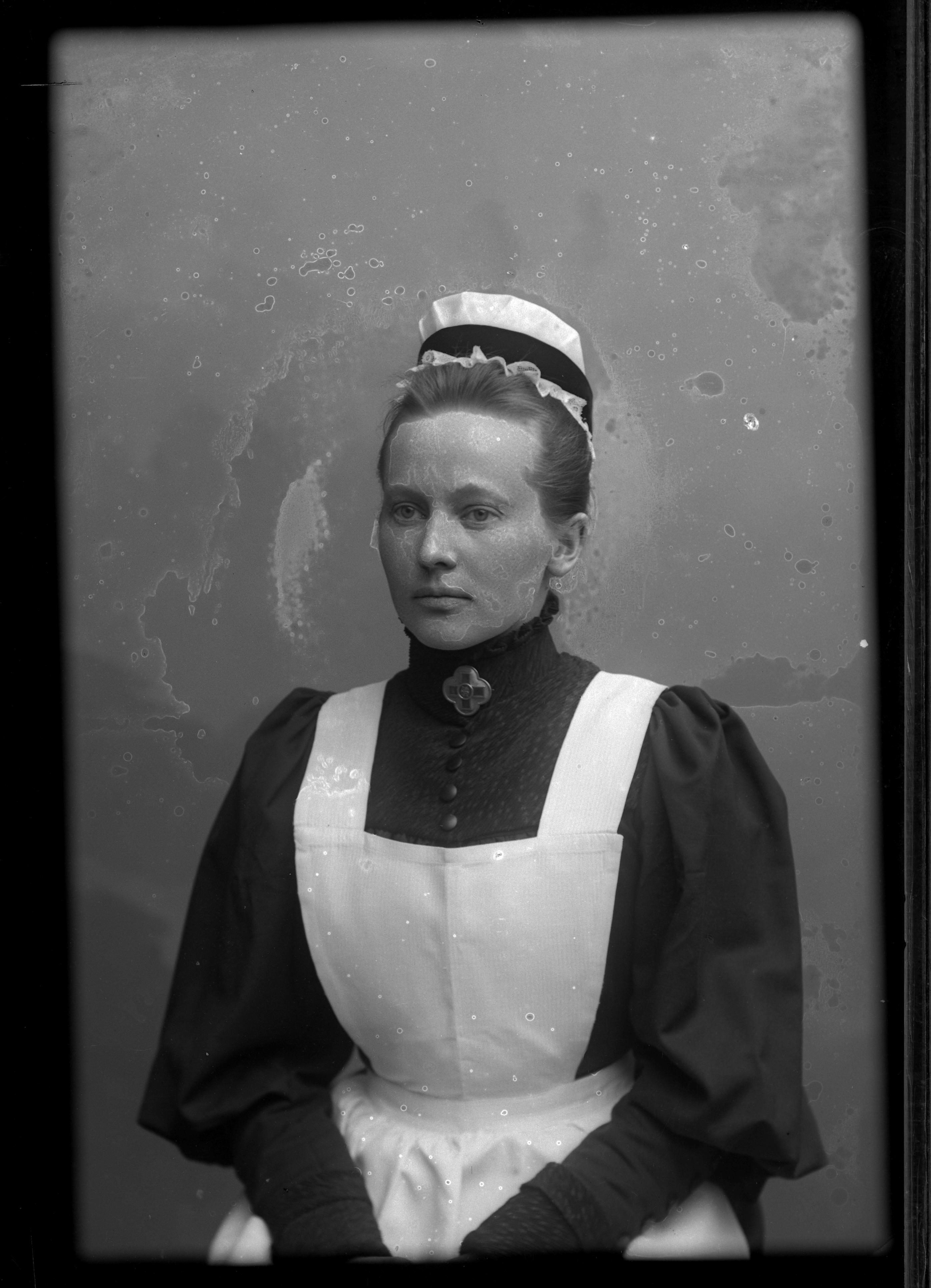 Porträtt i halvfigur av Anna Fogelberg i sjuksköterskeuniform.