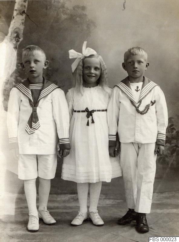 Bettys tvillingsbarn Erik och Ingeborg med kusinen Sixten.