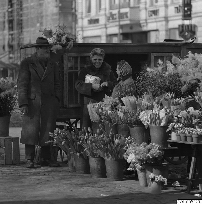 - Malmö, á la Paris. 1950-tal. Gustav Adolfs Torg, blomsterhandel.