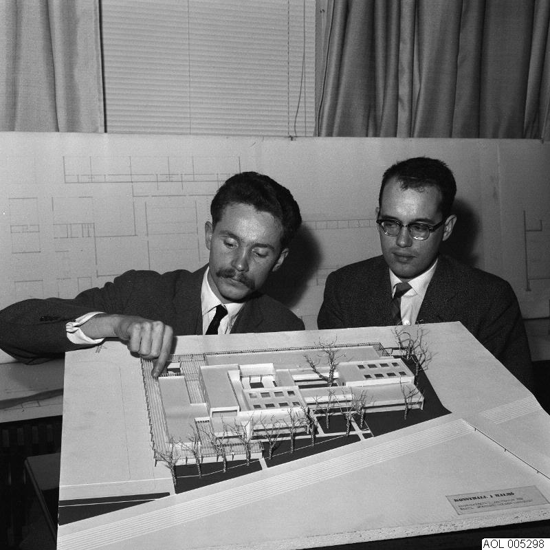 Visar modellförslag arkitekter Holger Lundqvist och Bertil Jansson.