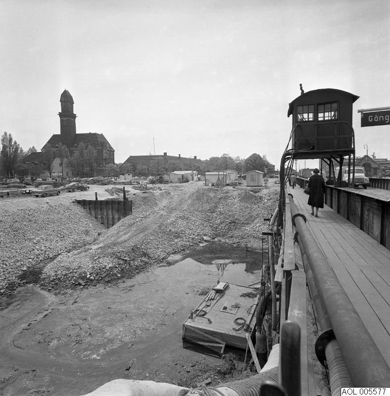 - Suellsbron vid Centralstationen i Malmö, till vänster syns Hamnförvaltningens byggnad. Fotografiet taget från Järnvägsbron, som 1959 ersattes av Suellsbron, i juni 1958.