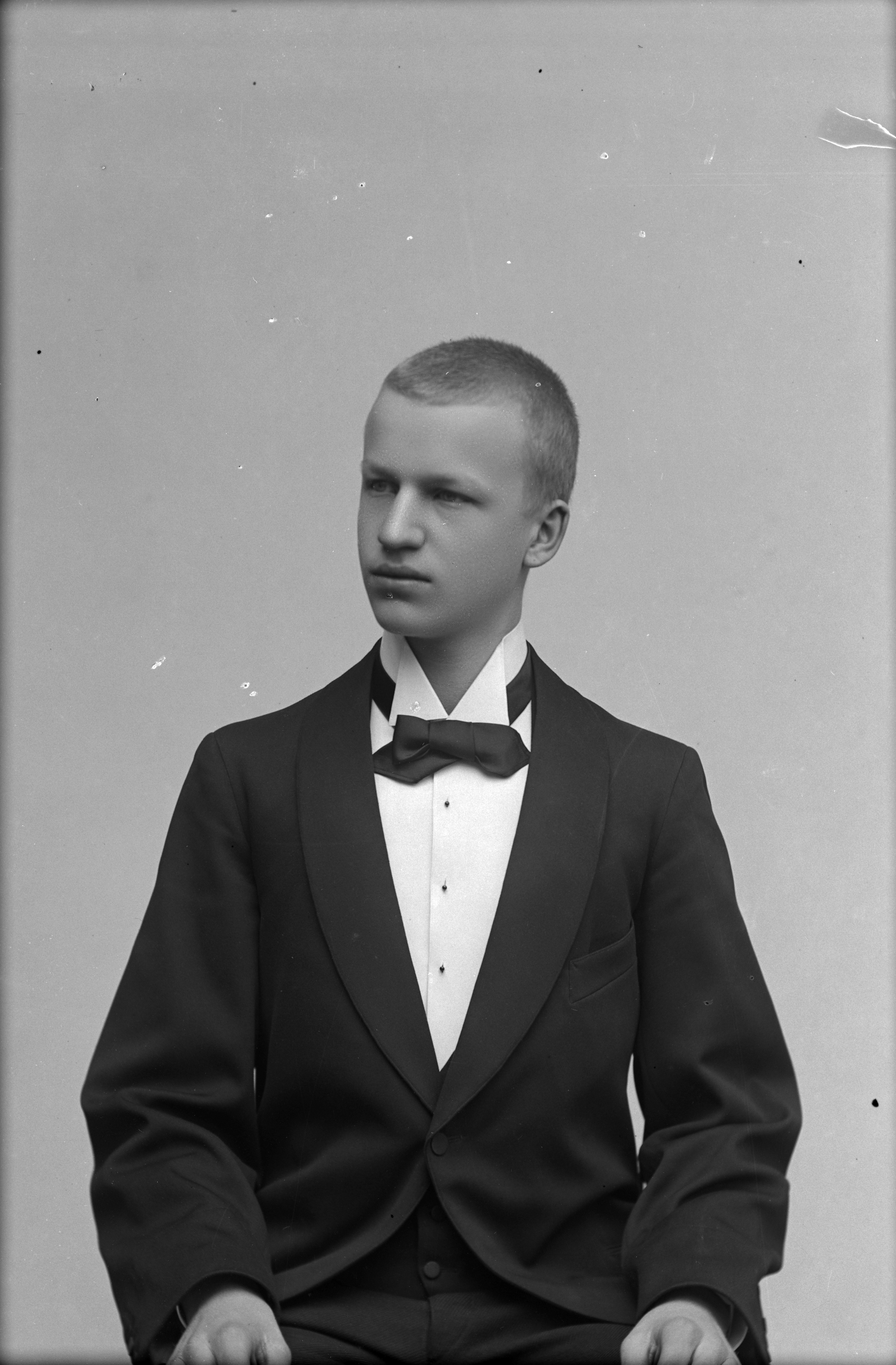 Porträtt i halvfigur av kontorsbiträde Gustaf Grundström, son till handelsmannen Axel Peter Grundström (1843-1904).