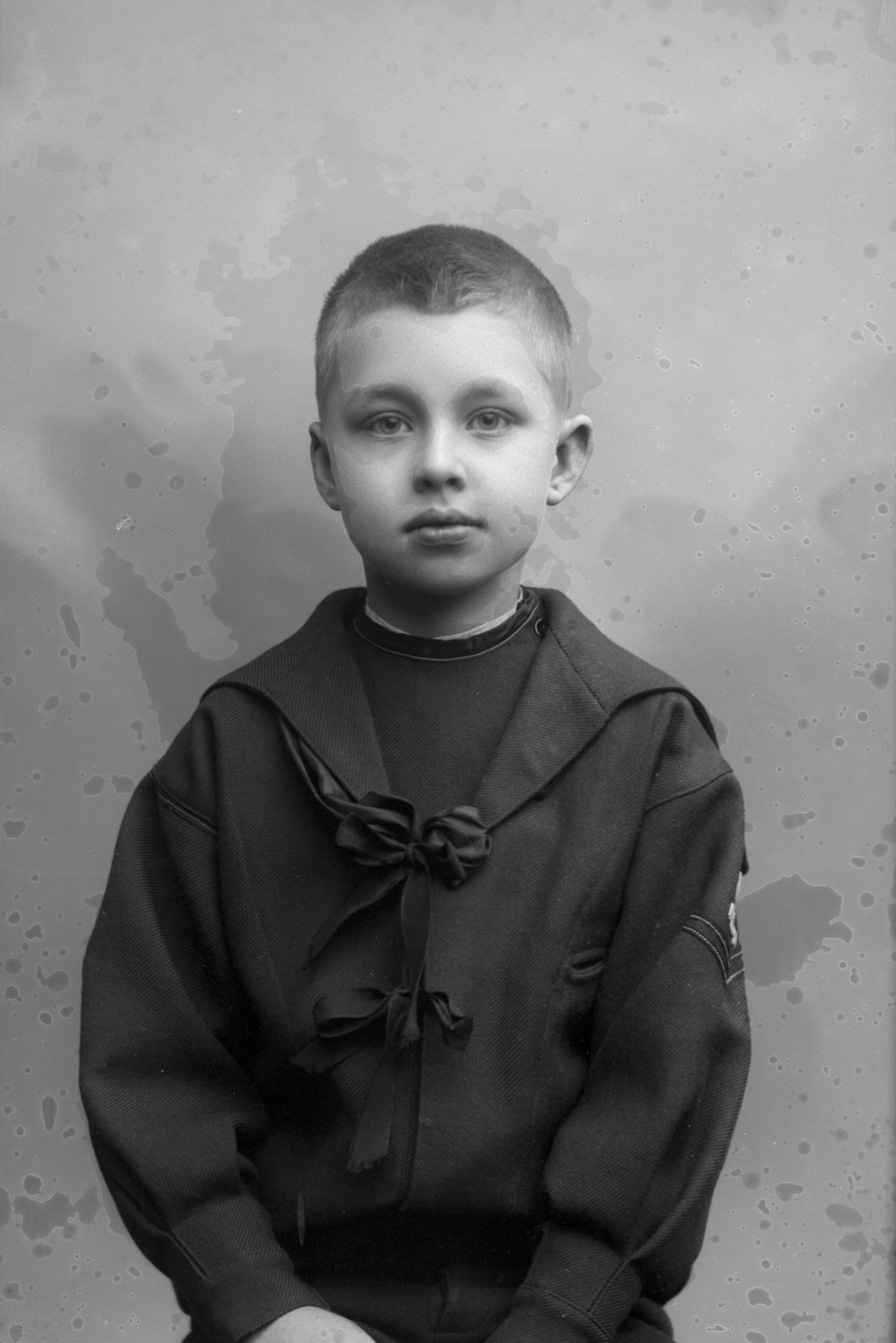 Porträtt i halvfigur av Sederholms son, iklädd sjömanskostym.