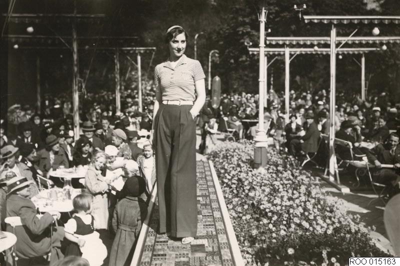 ROO 015163 :: kvinna, kungsparken, mannekänger, kvinnor, 1930-tal, exteriör, uppvisning, publik, park, 1936, mannekäng, parker